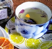 リーフ2本にヤグルマギク5枚、ミカン果皮2個を目安にティーポットに入れて熱湯を注いで5分程度ゆっくり抽出してください。水出しでもOKですので、季節を問わずお楽しみいただけます。ペットボトルに直接入れて冷蔵庫にいれておけば、水分補給にも便利です。入れっぱなしでもえぐ味等は出ないのお気軽にお使いいただけます。