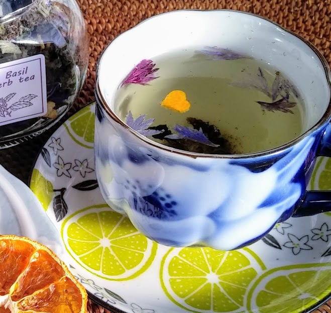 ホーリーバジルは様々な品種があるようですが、こちらの品種はうっとりするくらい、とにかく良い香り❣ スパイス臭は弱くて癖がなく、高貴な香りでやさしく飲みやすいハーブティーです。