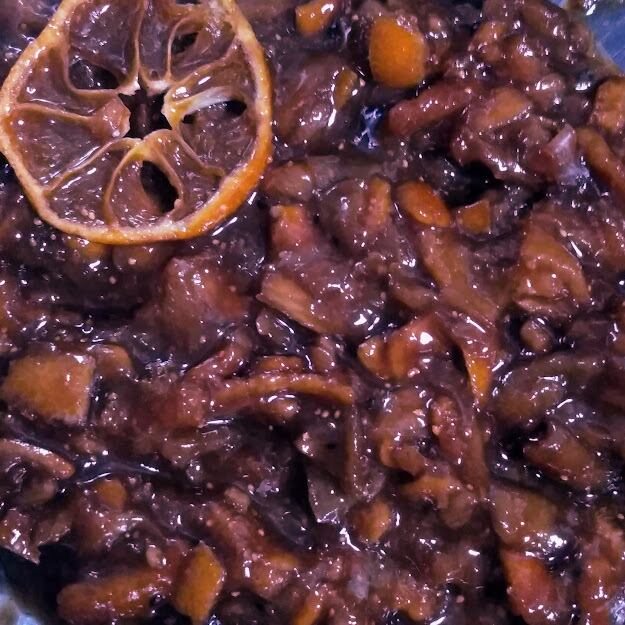 完熟フルーツをシンプルにカットしてドライにしたものをスパイスたっぷりのシロップに漬込んで、ワインも少し加えたリッチな大人のジャムです。